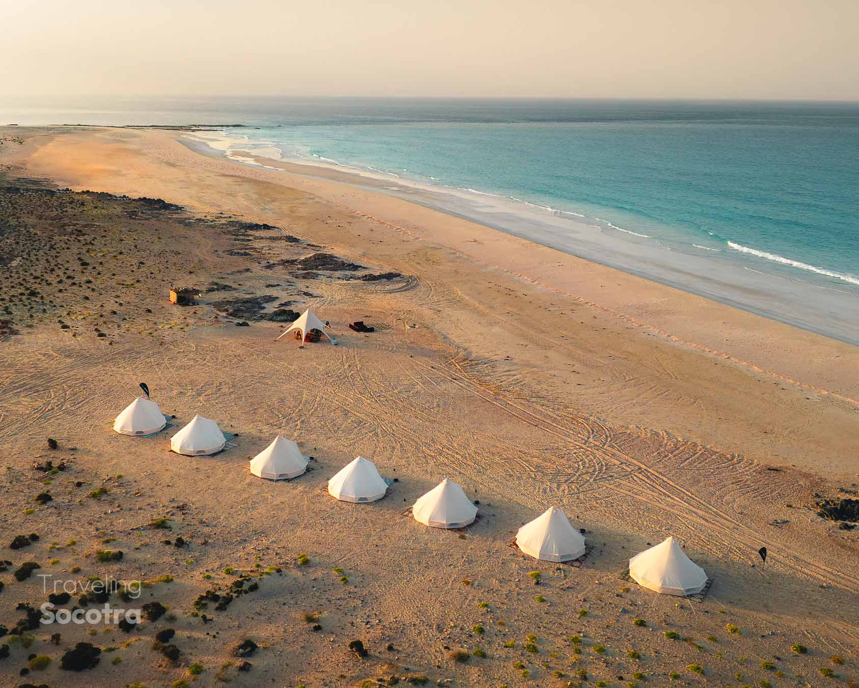 In addition to tent options, we use exclusive campsites at key locations across the island. Popular areas such as Detwah Lagoon, Arher dunes, and the Dragon Blood Tree plateau can become crowded during high season.